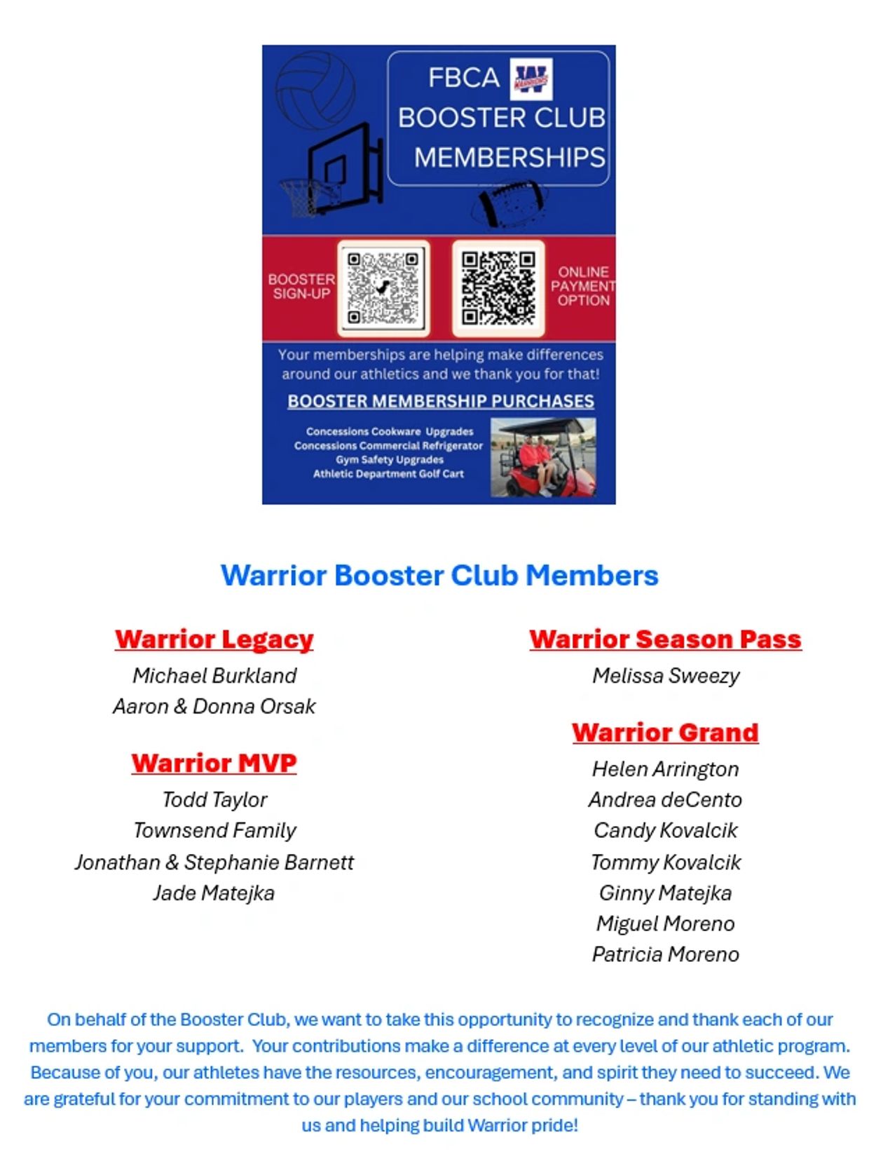 Thank You Booster Members!